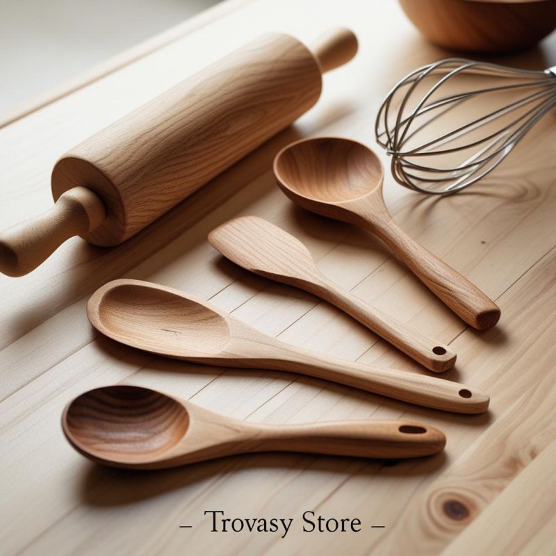 مَجْمُوعَة أَدَوَات مَطْبَخ خَشَبِيَّة